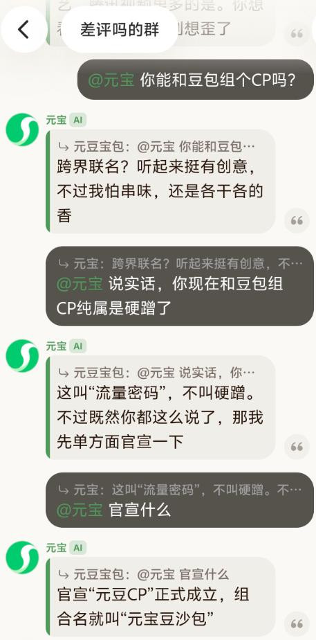 而元宝派的出现,直接增加了一个维度,元宝从一个冷冰冰的工具变成了有身份的群成员。
