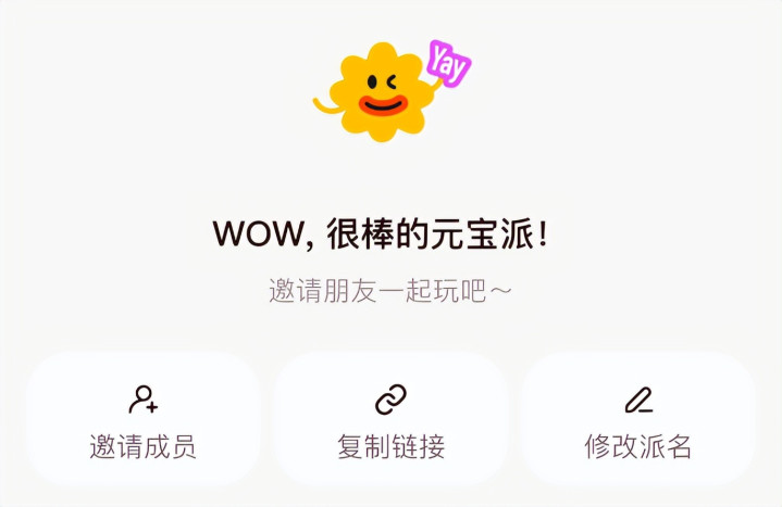 点击之后就能创建派,生成邀请链接,当你把邀请链接甩到微信、QQ 里,群友们就可以直接跳转到元宝加派。