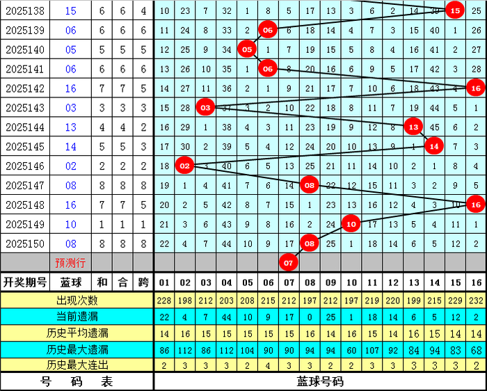 蓝球分析:最近奇数蓝球出现相对较少,本期注意奇数蓝球走热,关注05、07、13、15。