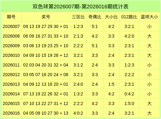 红球大小比为2:4,奇偶比为3:3,012路比为3:2:1,蓝球开出大数。